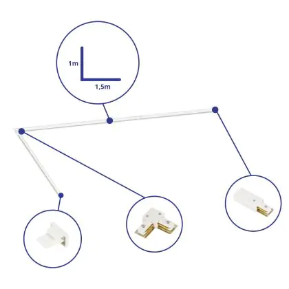 Beschrijving Bright Choice Rail Set 1-Fase L 1x 1,5 Meter Wit |incl. Eindkap, Voedingsconnector en L -Verbindingsstuk