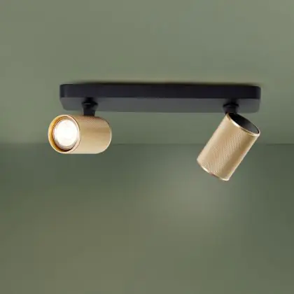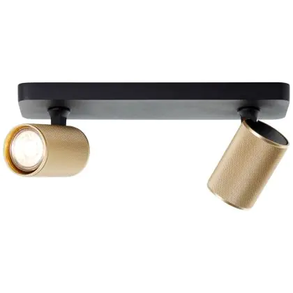Beschrijving Brilliant Marty Plafondlamp Aluminium Zanderig Zwart Goud 10W 700lm - 830 Warm Wit | Incl. 2x GU10