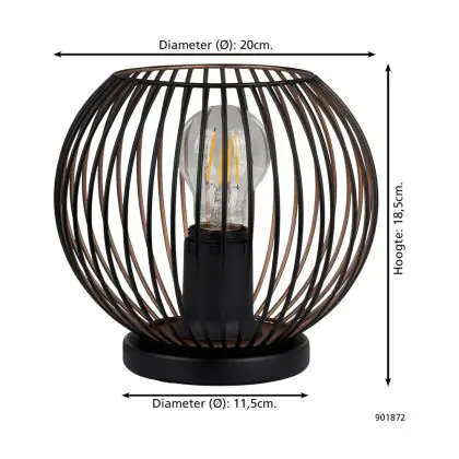 Beschrijving Eglo Tafellamp Almanzora Staal Zwart Koper | IP20 - Geschikt voor 1x E27