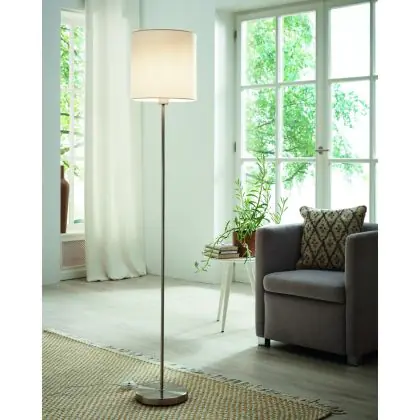 Beschrijving Eglo Vloerlamp Pasteri Staal Satijn Nikkel Wit | IP20 - Geschikt voor 1x E27