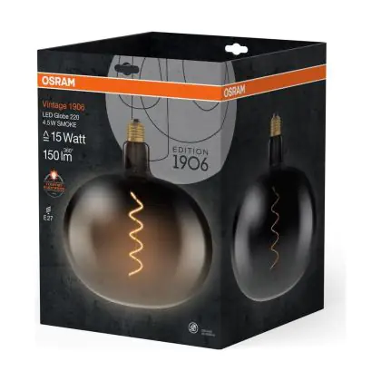 Beschrijving Osram Vintage 1906 LED Classic Globe LED E27 Special Filament Smoke 4.5W 150lm - 818 Zeer Warm Wit | Vervangt 15W