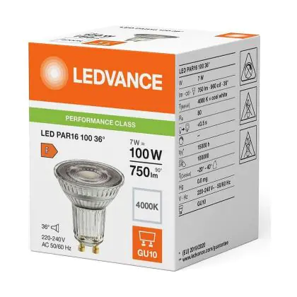 Beschrijving Voordeelpak 10x Ledvance LED PAR16 GU10 Reflector 7W 750lm 36D - 840 Koel Wit | Vervangt 80W