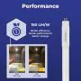 Deze Noxion T5 LED TL buis heeft een zeer hoge lichtopbrengst (HO), die wel 3900 Lumen bedraagt. Dit maakt de lichtbron uitermate geschikt om grotere oppervlaktes efficiënt te verlichten. Dit zie je ook terug in de efficiëntie van de lamp. Hoe? Deze T5 LED straalt bij iedere watt energieverbruik een krachtig licht uit van Lumen, wat een stuk hoger ligt als de standaardwaarde van 65. Bovendien zorgt dit licht voor een effectieve lichtverdeling door de ° stralingshoek; er wordt geen onnodig licht verspilt aan bijvoorbeeld het plafond.