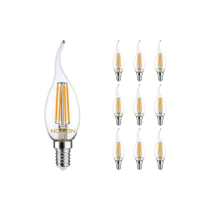 Beschrijving Voordeelpak 10x Noxion Lucent LED Filament Kaars 4.5W 827 BA35 E14 Helder | Dimbaar - Zeer Warm Wit - Vervangt 40W